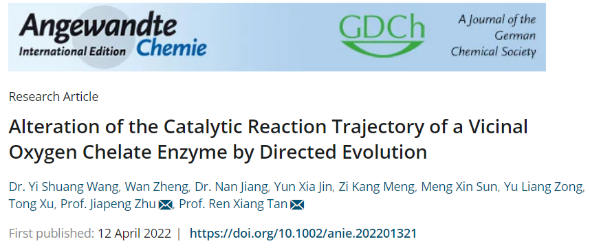 近日,william威廉英国官网谭仁祥教授团队在国际知名学术期刊Angew. Chem. Int. Ed.(中科院化学一区,IF: 15.336)在线发表题为 “Alteration of the Catalytic Reaction Trajectory of a Vicinal Oxygen Chelate Enzyme by Directed Evolution” 定向进化改变邻氧螯合酶催化的反应轨迹的研究成果。