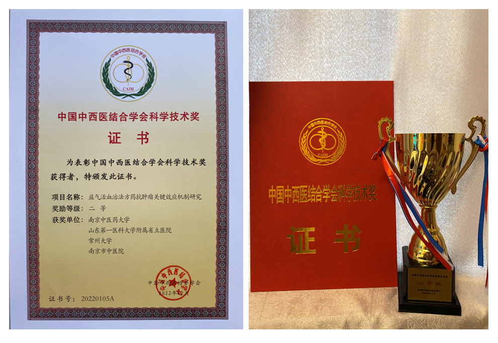 2022年中国中西医结合学会科学技术奖获奖证书与奖杯