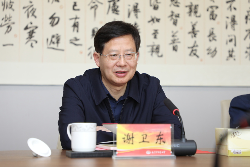 程海波对谢卫东一行表示热烈欢迎,简要回顾学校发展历史和成就,并从人才培养、学科建设、师资队伍、科技创新、平台建设等方面重点介绍学校深入推进国家“双一流”和江苏高水平大学建设情况和成效。谢卫东对学校的热情接待表示感谢,并详细介绍了本次调研的背景和拟调研内容。