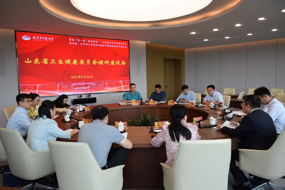 5月26日上午,山东省卫生健康委员会二级调研员毛新一行来我校调研中医药科技成果转化工作。校党委常委、副校长程海波出席会议,江苏省卫生健康委员会中医科教处副处长汪海波、科学技术处处长陈军、副处长陈志鹏、开展科技成果转化工作相关教授代表参加座谈会。会议由陈志鹏主持。