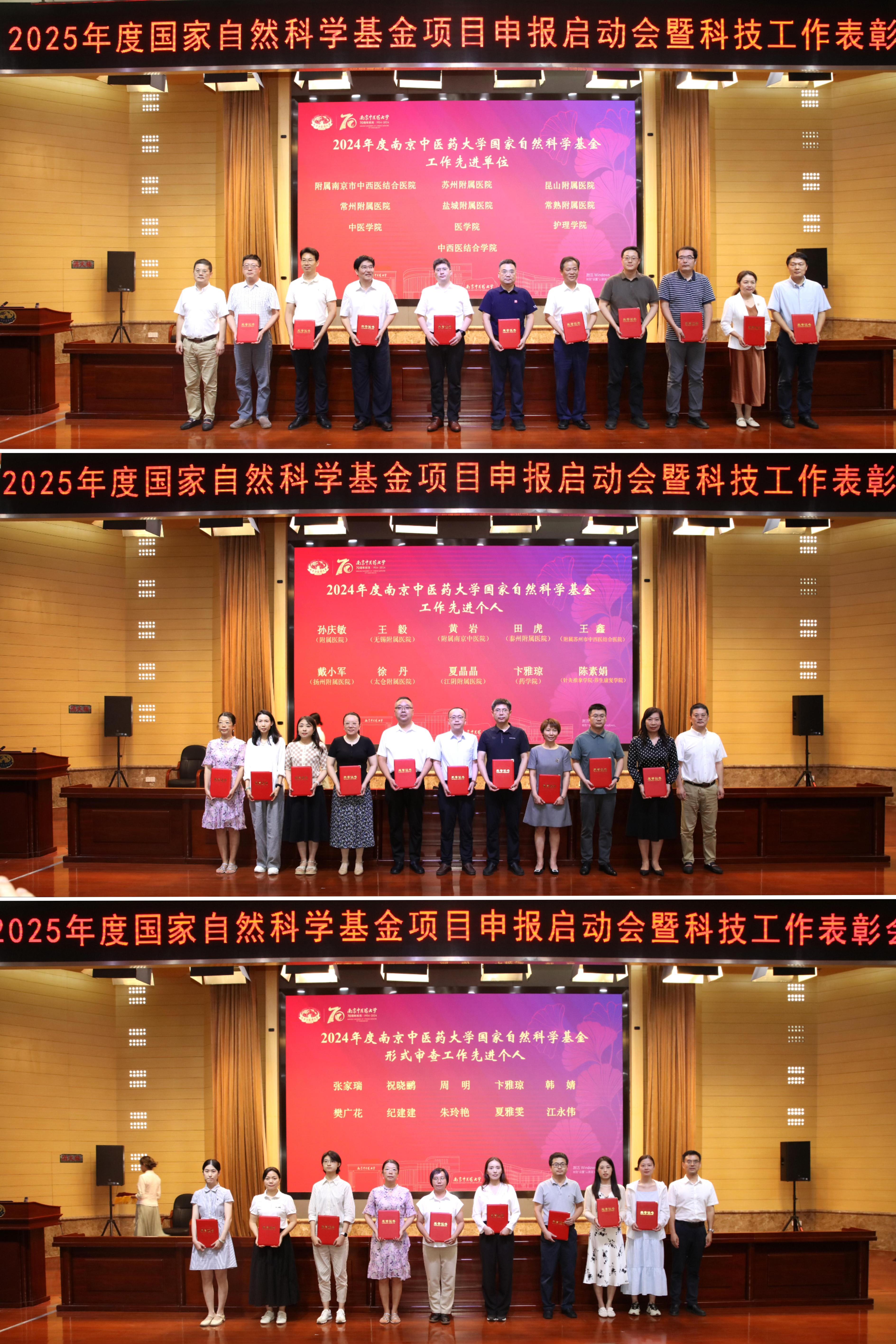 曹鹏代表学校向附属医院各位领导、来宾表示热烈欢迎,向获奖单位、个人表示衷心祝贺,向长期以来支持和参与学校科技创新发展的科研人员和科研管理工作者表示诚挚的感谢和崇高的敬意。曹鹏指出,学校深入贯彻习近平总书记关于中医药和科技创新工作的重要讲话和指示批示精神,全面贯彻落实校第四次党代会战略部署,全体科技工作者携手奋进、戮力同心,2024年度国家自然科学基金申报再创佳绩,获批国家自然科学基金134项,立项数连续9年位居全国中医药院校前列。曹鹏强调,习近平总书记高度重视科研创新工作,在今年六月召开的全国科技大会、国家科学技术奖励大会、两院院士大会上强调“必须充分认识科技的战略先导地位和根本支撑作用”。高校是基础研究主力军和重大科技突破策源地,国家自然科学基金是衡量高校基础研究实力和原始创新能力的关键指标。面向国家重大战略需求和科技强国建设,学校将加强对国家自然科学基金工作的战略规划与前瞻布局,优化申报和管理机制,加大分类指导与学术交流,突出竞争优势。就做好2025年度国自然申报工作,进一步提升我校科技工作质效,曹鹏提出五点要求。一是提高政治站位,要充分认识国自然申报工作的重要性,积极组织申报、主动参与申报。二是强化协同协作,要主动寻求资源,形成“跨学科合作、校院协同”的生动局面。三是选好答题方向,坚持“四个面向”,深入分析研究中医药领域的前沿动态和国家自然科学基金指南要求,精准把握研究方向。四是提高申报质量,要高度重视申报书撰写、不断优化完善,学校将组织专家给予多角度、全方位的指导,开展多轮申报书撰写辅导和评审。五是助推青年人才成长发展,各二级单位、附属医院要加大对青年人才的培养和支持,多措并举帮助他们尽快成长为中医药科技创新的中坚力量。