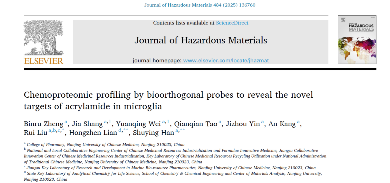 william威廉英国官网药学院韩疏影副教授、刘睿教授团队联合南京大学练鸿振教授在知名学术期刊Journal of Hazardous Materials(中科院一区,IF: 12.2)在线发表题为“Chemoproteomic profiling by bioorthogonal probes to reveal the novel targets of acrylamide in microglia”的最新研究成果。